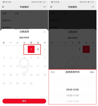 5.点击“日期选择”,选择日期后点击“确认”,进入下拉菜单选择具体取件时间,然后点击“确认”;