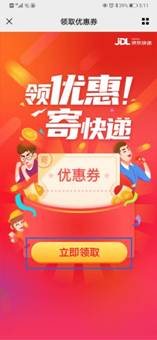 8.跳转至“领取优惠券”界面,点击“立即领取”,绑定个人信息后自动领取并跳转至寄件页面;