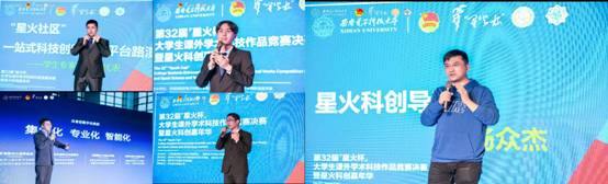开幕式后,12月5日-6日在体育馆副馆中央舞台举办了第32届“星火杯”大学生课外学术科技作品竞赛终审决赛及冠亚季军争夺赛。此次“星火杯”竞赛自10月份启动以来,各学院/书院学生共申报2080件作品,经学生专家评审委员会初评、校内专家指导教师复审,最终1400余件入围终审决赛,作品涵盖科技发明作品、计算机和软件设计作品、自然和社会科学论文、哲学、社会科学调查报告及学术论文、文献综述等各个类别,从不同领域和方向,全面展现了我校学生科技创新活动的成果。12月5日,《“华夏留影”智能表演舞台》等共53支校级一等奖团队项目进入到终审决赛路演答辩环节,经12位校内外评审专家现场打分,《基于图像识别的智能失物招领系统》《基于“妙算”的自动巡航植保无人机》等14件作品获得校级特等奖。12月6日上午,14件特等奖作品参与到冠军争夺赛中,经过激烈角逐,《琴悦人生》项目团队摘夺本届“星火杯”大学生课外学生科技作品竞赛冠军,《MiniKoji-桌面级四足机器人》《基于图像识别的智能失物招领系统》获得亚军(并列),《Sokoban Cyberpunk 2088》获得季军。