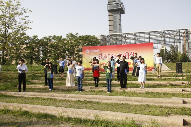 团日中,同学们带来的九首诗歌朗诵铿锵有力,让大家在深入体验中华传统文化的同时,感受了祖国母亲的伟大,展示了“中国雄起”这个西电学子共同的梦想。同学们的朗诵《艰难的国运雄壮的国民》回顾了我国近年来所取得的发展成就,展示出了中国骄傲;随后带来的现代诗朗诵《青春的印记》从历史文化入手,从九十五年前的五四运动中汲取力量;最后同学们集体诗朗诵《西电人,中国梦》表现了西电学子对中国腾飞的强烈愿望。同学们的朗诵感染力强,主题鲜明,广场上不时传来热烈的掌声。