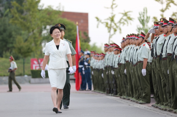 开学典礼正式开始前,学校举行了军训汇报表演,郑晓静首先检阅了新生军训方队。阅兵式结束后,参加军训的新生进行了应急棍术、军体拳、刺杀操、匕首操等军事科目表演。陈治亚、郑晓静随后分别向解放军边防学院及驻校选培办赠送了锦旗和牌匾。