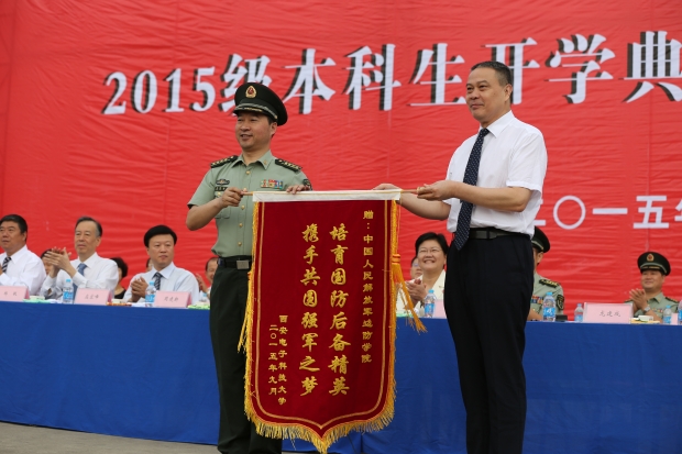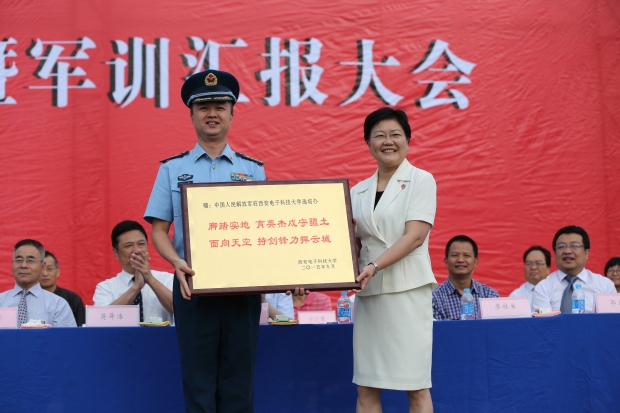副校长郝跃院士、陈勇、杨银堂、张培营、李建东,党委副书记、纪委书记蒋舜浩,总会计师刘延平,校长助理高新波、郑大远,中国人民解放军边防学院政委周建新大校、边防学院副院长杨阳大校、学校选培办郑军大校,边防学院学生军训教研室主任刘法语上校、李新柱大校、相关特邀嘉宾、各学院和相关职能部门负责人,以及全体新生和参训干部教官参加了开学典礼和汇报大会。