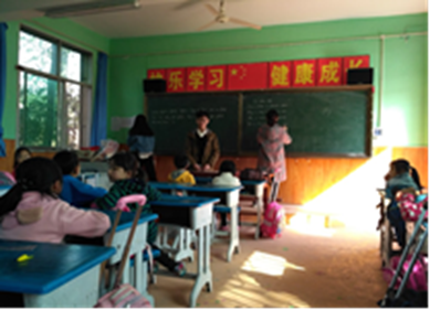 南雷村小学的学生很少,每个年级只有一个班,学员们每四人一组负责一个年级。学员们运用了多种教学方法,充分调动起孩子们产生对英语学习的兴趣。有的教孩子们用英语唱儿歌,有的通过画画来帮助孩子们记单词,一年级的负责人还在课堂上带领孩子们做了英语小游戏,类似于大家熟知的击鼓传花,拿到“花”的学生要看图识词。在这样快乐的教学过程中,孩子们的学习效率比平时更高。