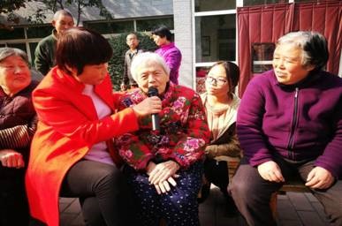11月8日,学员们组成的关爱老兵志愿小队来到陕西抗战老兵照护中心。老兵们大多八九十岁高龄,精神矍铄,正在院子里唱红歌,学员也加入他们一起唱起了《没有共产党就没有新中国》、《团结就是力量》等经典的抗战老歌,并向老兵们表演了拿手歌曲《在灿烂的阳光下》、《五星红旗迎风飘扬》等。老兵们说,经常唱一唱红歌,提醒大家不要忘记过去的苦难岁月。