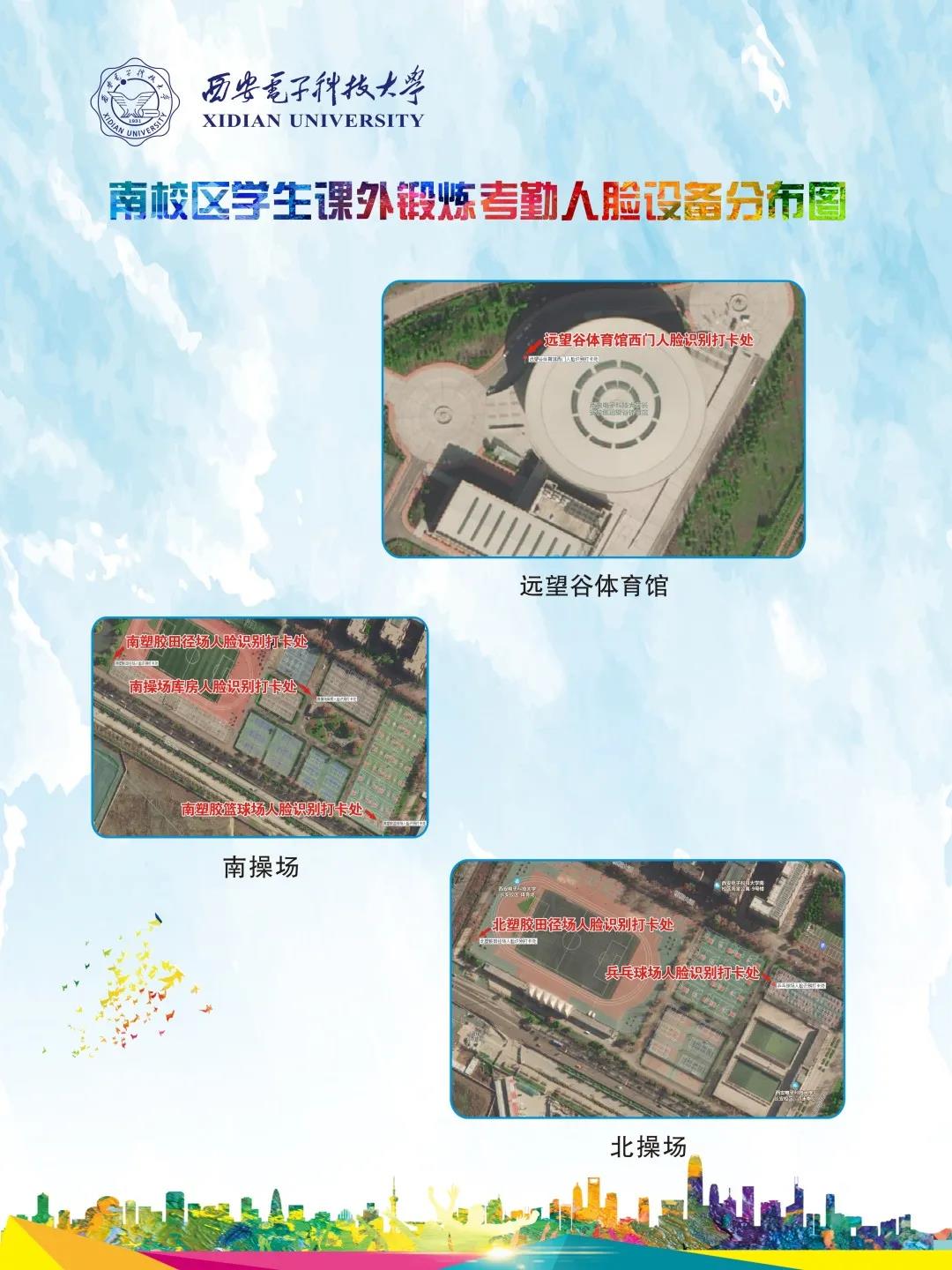 具体位置见南校区学生锻炼考勤人脸设备分布图。