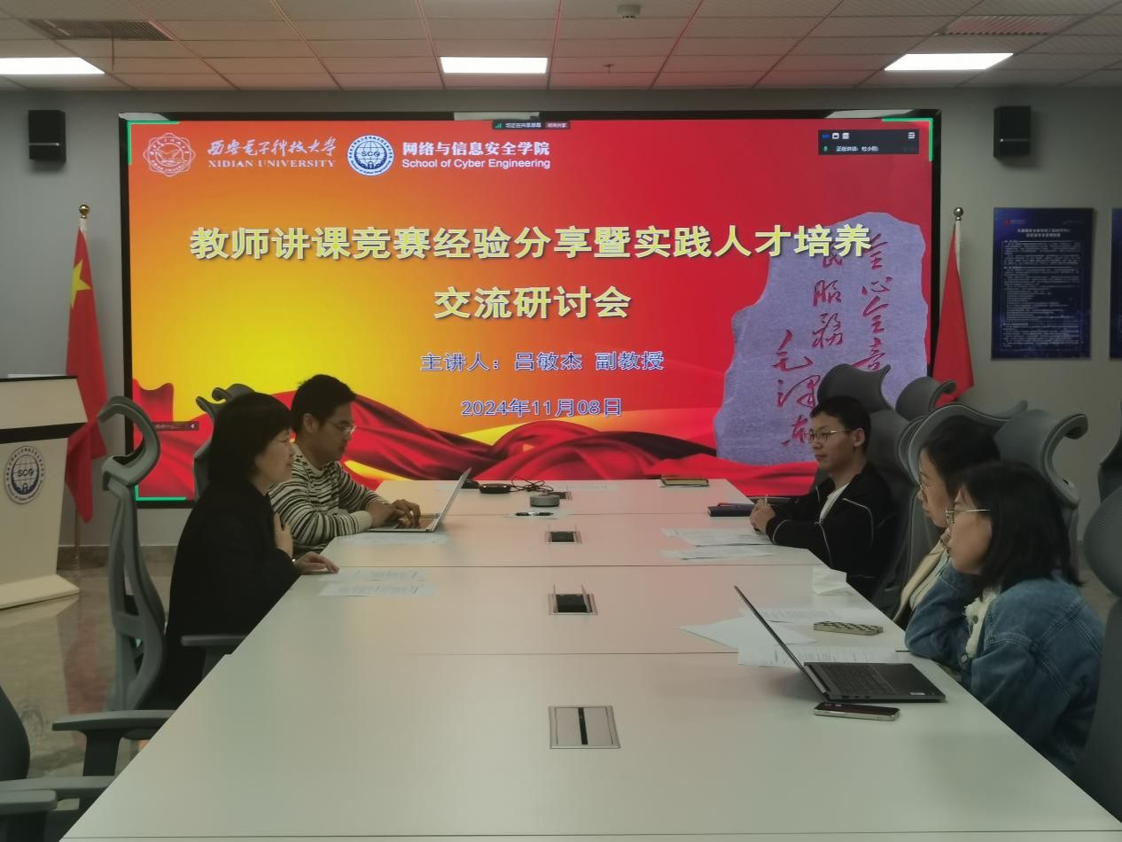 (通讯员 张晓静)11月8日下午14:30,网络与信息安全学院教师讲课竞赛经验分享暨实践人才培养交流研讨会在网安大楼AII 203会议室召开,会议主要针对教师讲课竞赛经验及实践人才培养进行深入探讨,旨在提升网络安全教师教学能力水平,进一步提升育人能力和一流专业建设水平。本次研讨会由吕敏杰副教授主讲,网信院教师参会。