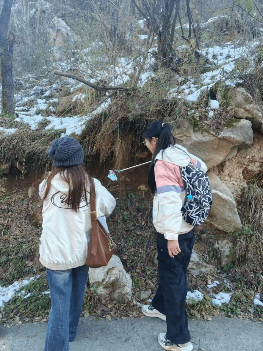 活动开始,同学们做好分工、协作劳动,有的负责清理道路两旁的垃圾,有的深入山坡、溪边,仔细搜寻被丢弃的废弃物。大家热情高涨,手持垃圾袋、夹子等工具,沿着峪道认真地捡拾垃圾。无论是散落在草丛中的塑料袋、饮料瓶,还是隐藏在树林里的烟头、废纸,都仔细清理干净。